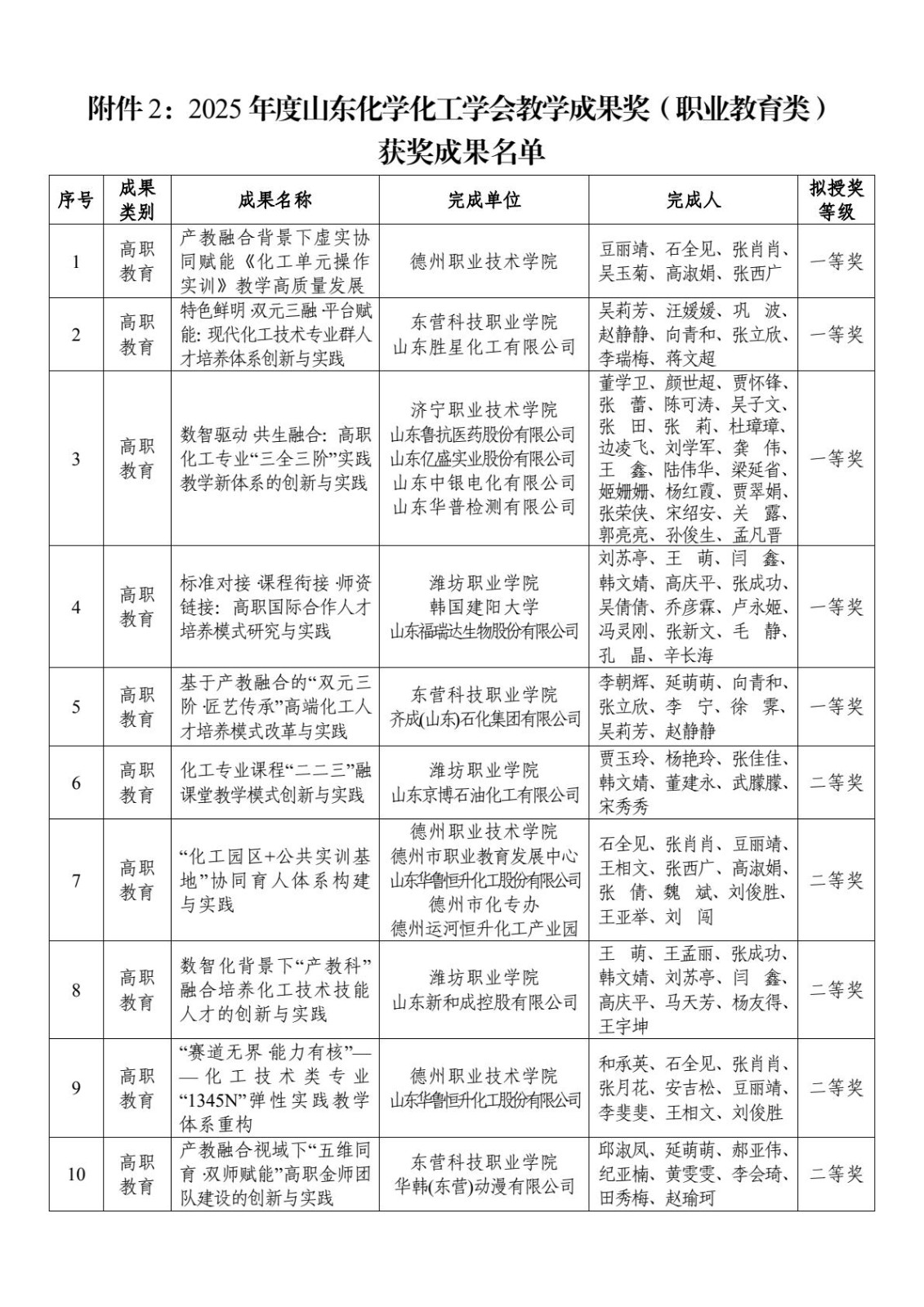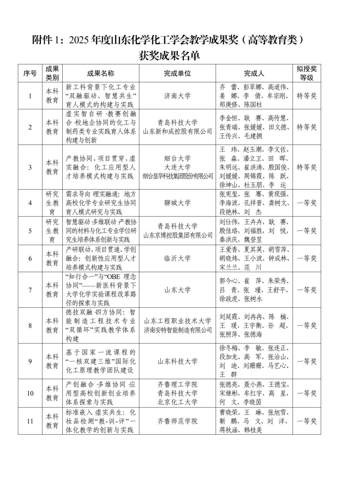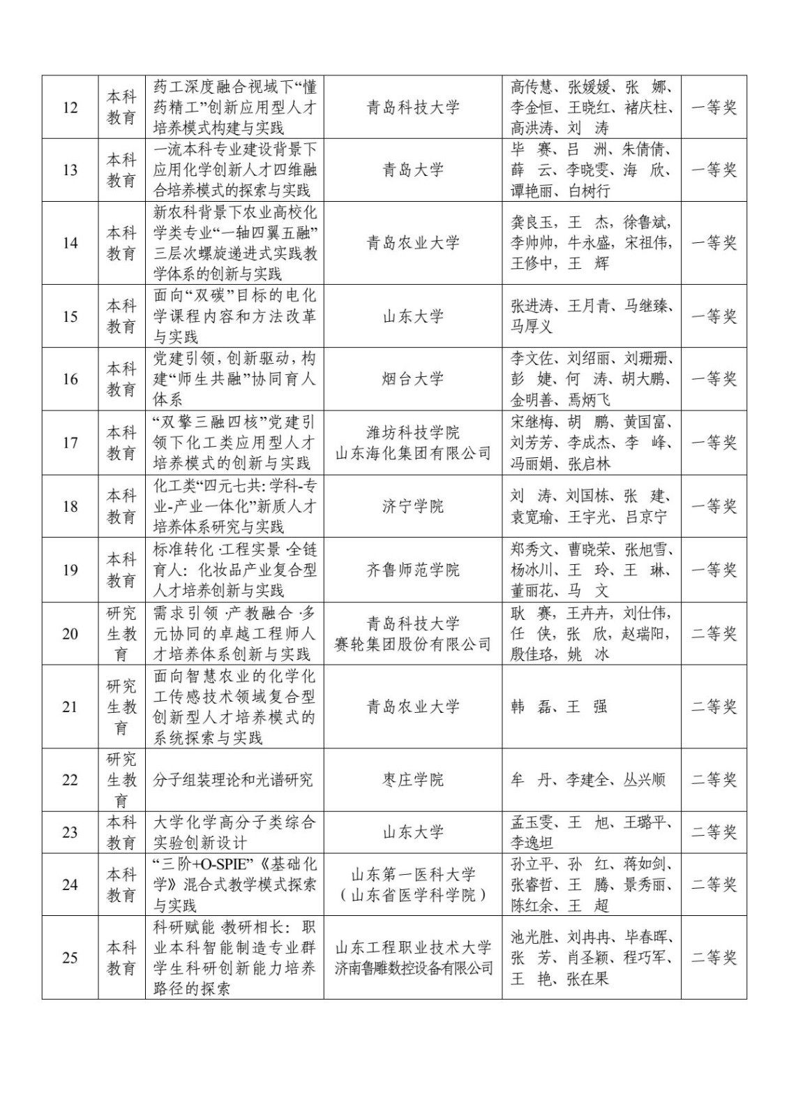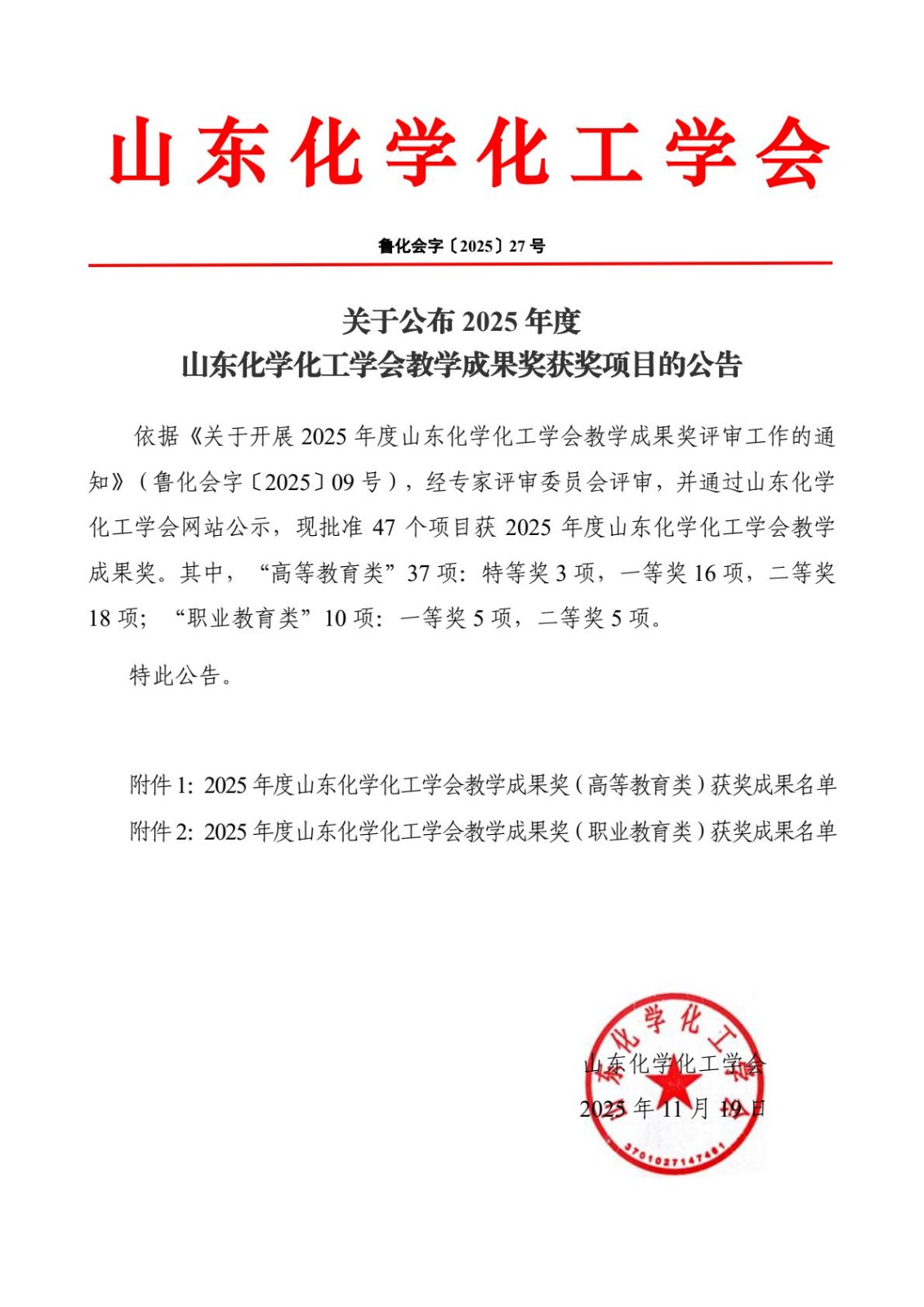 關于公布2025年度山東化學化工學會教學成果獎獲獎項目的公告