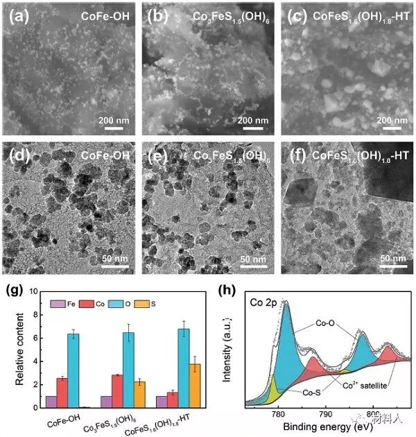 (g)每種材料以Fe為基準,Fe,Co,O,S元素的比值,計算基于XPS分析;