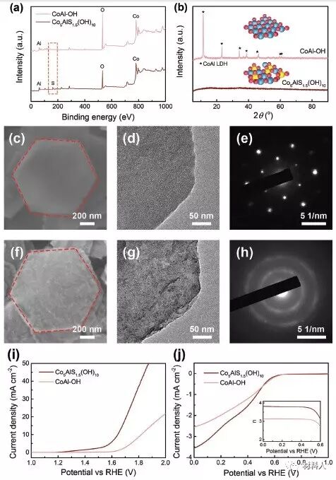 (c-e) CoAl-OH的SEM,TEM和SAED圖像;